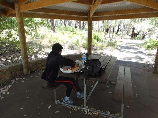 Nous restons dans le parc, mais trouvons l’aire de pique-nique d’où part une balade
