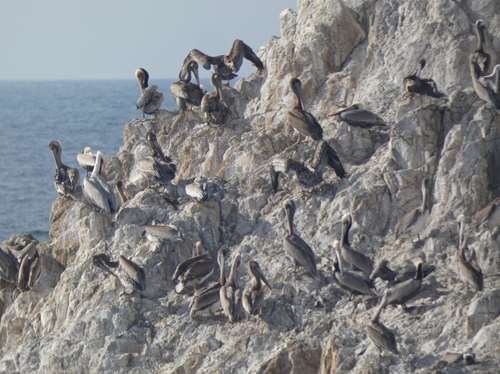 On croise quelques animaux, notamment sur ce rocher : beaucoup d'oiseaux (cormorans, pélicans ...)