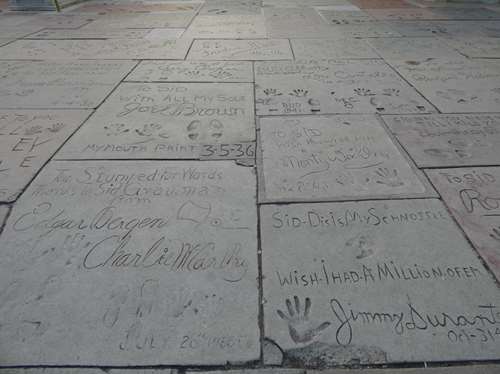 Ici, ce n'est pas dans une étoile, mais dans du ciment que les stars ont moulé leurs empreintes (pieds et mains)