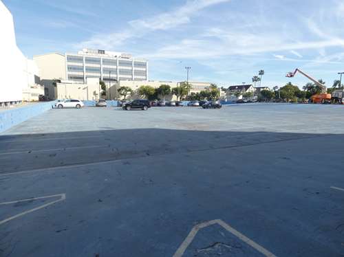 Ce qu'ils appellent la "piscine" qui aujourd'hui vidée est un parking. Pleine d'eau, ils y jouent des scènes dans la mer avec vagues et l'écran pour faire décor ... Dans les "10 commandements", quand la Mer Rouge s'ouvre, c'est ici que ça a été tourné