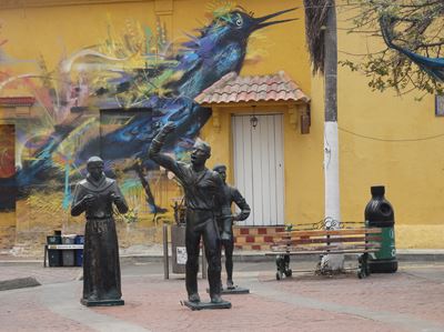 A deux pas, la place de la Trinidad avec ses statues représentant les premiers révolutionnaires de 1811 qui ont initié l'indépendance de la Colombie