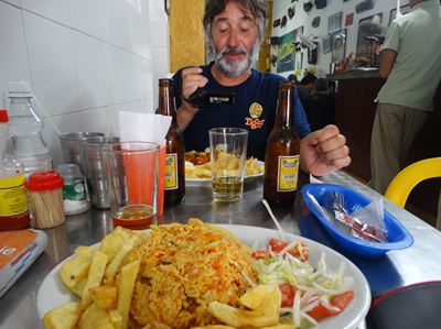 Nous renouons averc les restaurants : riz au poulet et sauce de langue à midi