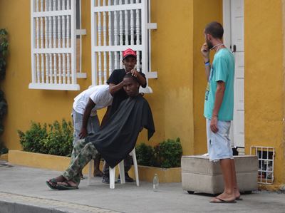 Toujours de l'animation à la place de la Trinidad : le coiffeur en action