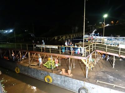 Toc, toc, toc : Mara toque à la porte de la cabine : "Tabatinga, Tabatinga! ". Quel n'est pas notre étonnement quand elle ajoute : il est trois heures ! En effet, nous devions arriver à Tabatinga à midi... et notre téléphone marque 4 heures.