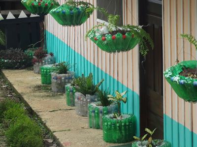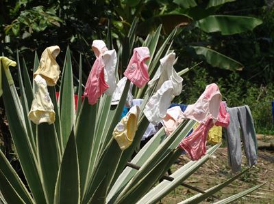 A notre hébergement, une série de fleurs et l'art de recycler une gazinière