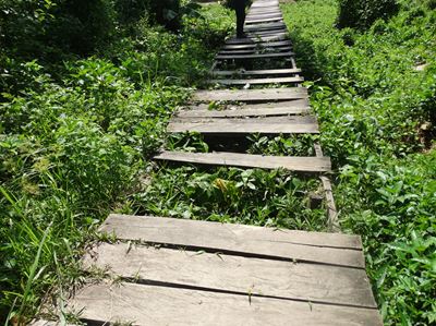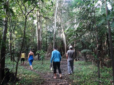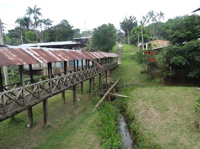 Sous une chaleur accablante, nous entreprenons de rendre visite à deux communautés amérindiennes, par une sentier bétonné. Nous longeons l'Amazone pendant 1 heure