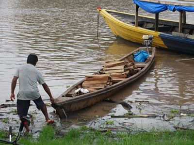 De plus, avec la montée des eaux, l'Amazone charrie quantité de troncs d'arbres qui rendent la conduite très dangeureuse. C'est du gymkhana.