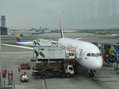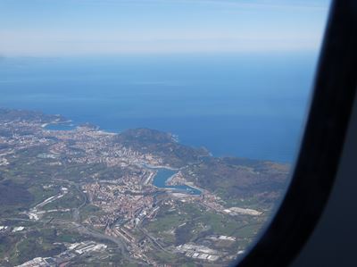 Taxi jusqu'à l'aéroport de Cartagena ; puis premier avion (1 h 30) jusqu'à Bogota ; deuxième avion jusqu'à Madrid (8 h 30) ; et enfin, troisième avion jusqu'à San Sebastian (1 h 15) où Jean Claude nous attend.