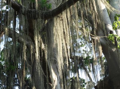 . Les branches de ces grands arbres sont recouvertes de "barbas de viejo" (barbes de vieux) ou musgo qui est en fait un lichen