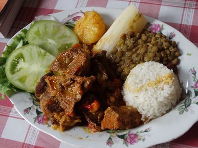 Le midi, à Barichara, de la carne sudada (viande à l'étouffée) et tout le reste...