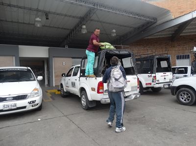 Taxi depuis l'hôtel jusqu'à San Agustin, puis camionnette jusqu'à Pitalito, un colectivo jusqu'à Garzon, un autre plus pourri jusqu'à La Plata (pour passer sur des pistes) et une camionnette avec des bancs à l'arrière jusqu'à Tierradentro