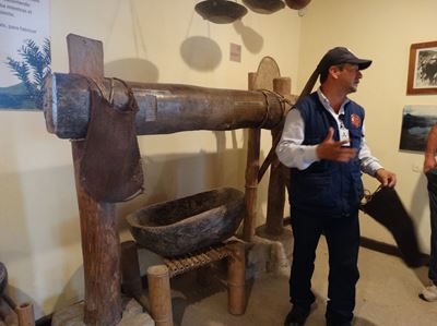 Actionnée par des chevaux, une machine pour broyer les cannes à sucre