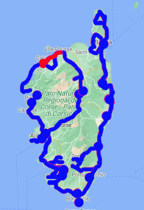 Dernier jour à Calvi, le temps de parcourir la côte jusqu'à L'Ile Rousse, accompagnés par un vent à décorner un porc corse(quand ils auront des cornes). De nouveau quelques petits villages