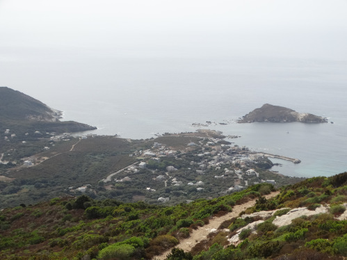la côte et le port de Centuri vus d'en haut ; le haut lieu de la langouste française