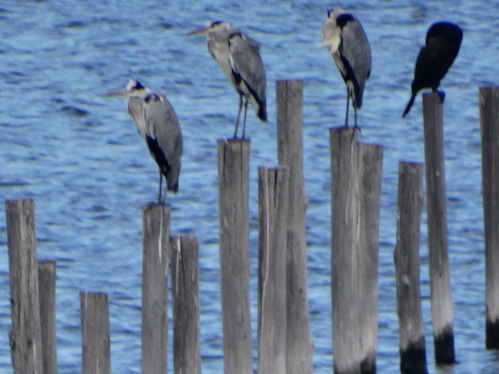 des hérons cendrés stoïques