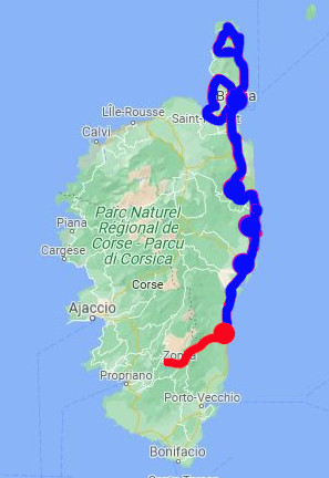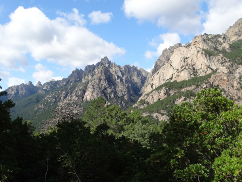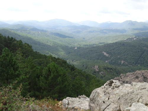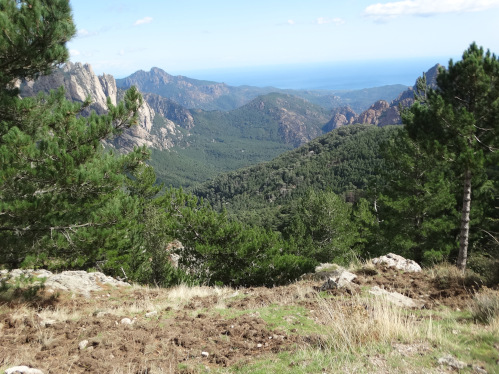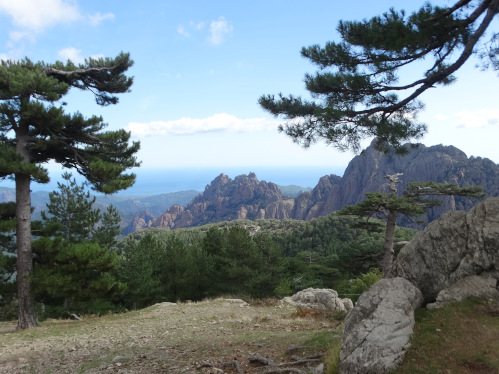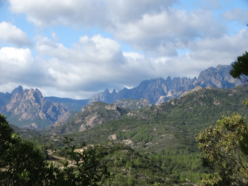 L'arrière pays de Solenzara est très montagneux ; une route tortueuse mais assez large nous mène au col de Bavella, un des quatre sites majeurs de Corse. Nous n'osons pas imaginer les embouteillages en plein été