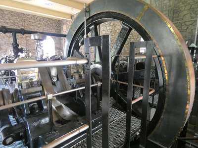 Nous retrouvons la même machine à vapeur que lors de la visite de la mine et sa transformation du mouvement