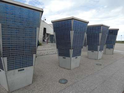 Ville pas sympa pour les fourgons relégués à l'extérieur dans un parking payant. C'est ici qu'a été construit un port provisoire