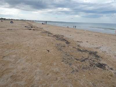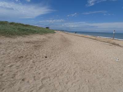 La plage de Ouistreham est immense, et on retrouve les cabines