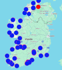 Voilà, nous entrons en Irlande du nord, pas de frontière, rien qui le signale, sauf qu'il faut maintenant transformer les miles, pounds, inches en unités européennes (km, euro, kg ...)