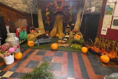 La cathédrale protestante, (on est ici dans la zone protestante), avec à l'entrée cette exposition dont on n'a pas compris la raison. Peut-être Halloween.