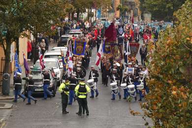 Des Anglais ou des Unionistes (Irlandais qui veulent le rattachement au Royaume Uni) protestants qui paradent en habits du XVII°, rendant hommage à ceux qui ont résisté au siège catholique en 1628
