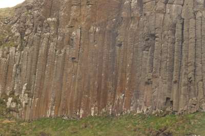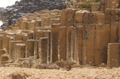Et voici les premières colonnes : il s'agit d'un phénomène géologique impressionnant : il y a plusieurs dizaines de millions d'années, de la lave basaltique s'est écoulée d'un volcan et s'est refroidie rapidement : c'est ainsi que 40 000 colonnes se sont formées