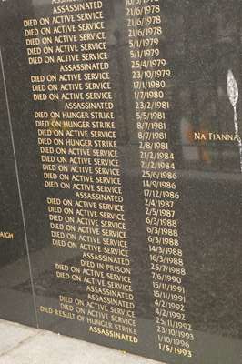 Comme à Derry, de nombreuses stèles et monuments commémorant les morts de l'IRA ou de la grève de la faim