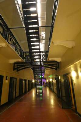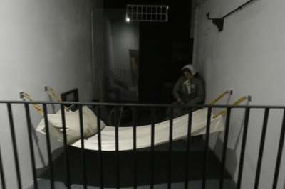 A l'intérieur, des cellules sont aménagées, de part et d'autre du couloir central