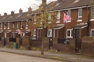 La zone protestante, avec les drapeaux anglais