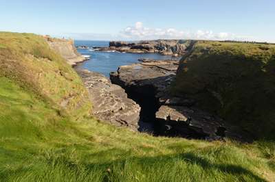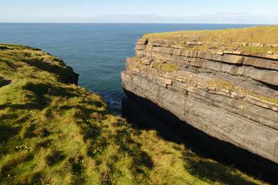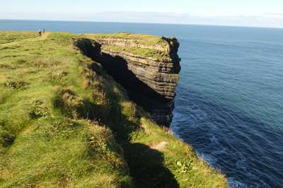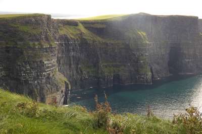 Ce sont de splendides falaises (214 m de haut) , mais nous avons, nous, l'impression d'être sur la muraille de Chine, vu l'affluence. En plus, il y a même l'ambiance : nous sommes accompagnés par un bus de Chinois. C'est d'ailleurs le site le plus visité d'Irlande.