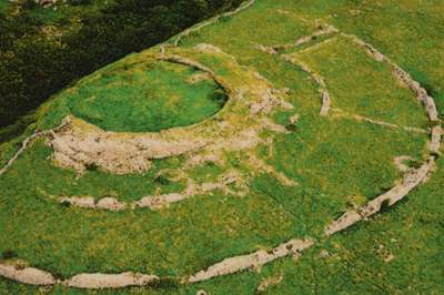 Un des côtés est situé au bord d'un précipice, ce qui le protège de ce côté-là