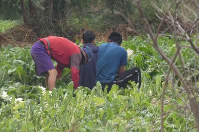 Face à cette palette de peintre, les paysans s'activent : pas de mécanisation : un âne et des bras