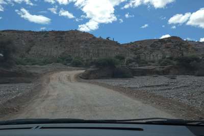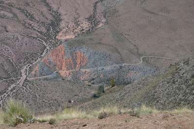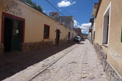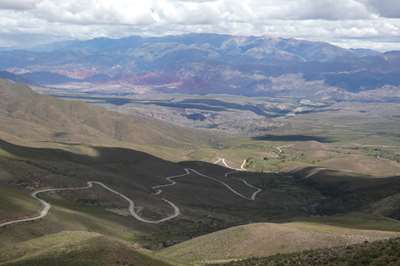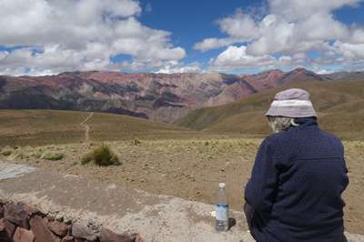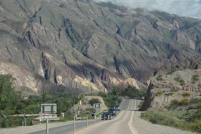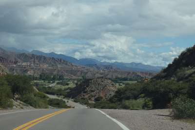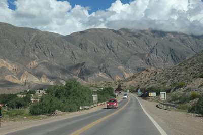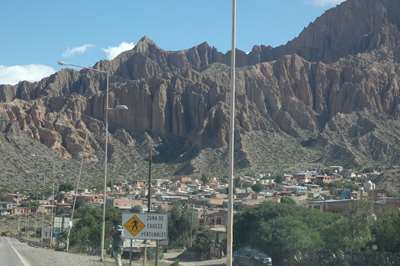 Nous arrivons à Humahuaca d'où part notre piste empierrée. Nous essayons de savoir si elle est praticable, impossible de se garer pour trouver l'office de tourisme. Seul le pompiste nous donne des informations positives. Est-il fiable ??? Nous tentons le coup