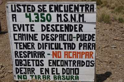La mise en garde est claire : "vous êtes à 4350 m. Evitez de descendre, marchez lentement, vous pouvez avoir des difficultés pour respirer"