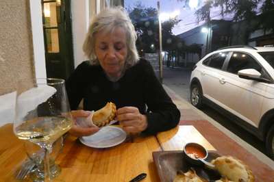 Voilà que l'oeil aiguisé de mamie remarque une promotion sur ........ les empanadas et deux verres de vin