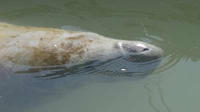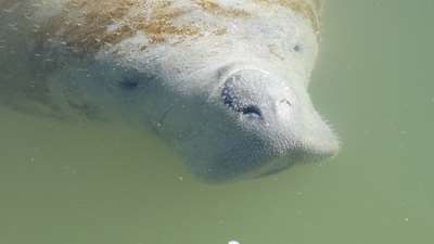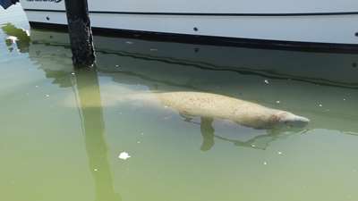 Des lamantins, animal en voie d'instinction (difficile à lire, Naïla) à cause des hélices des bateaux