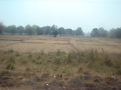 et rencontrons des rizières asséchées (nous sommes en saison sèche)