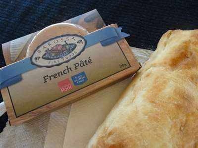 Le pique-nique : nous avons trouvé du pâté français fabriqué en Australie. Rien à voir avec le pâté de La Houneyre