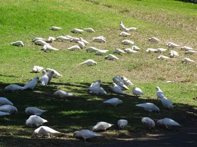Tout autour du centre ville, une rivière, des parcs et les cacatoès qui vont avec et qui viennent décortiquer les petites pommes de pins