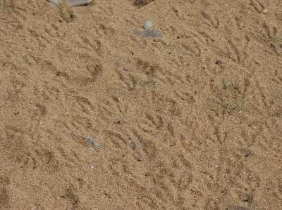 Nous avons trouvé les empreintes des pingouins et leurs nids. Malheureusement, ils n'apparaissent qu'à l'aube et au crépuscule ; le reste du temps, ils sont dans l'eau