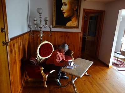 Notre hébergement du jour est assez original : nous sommes chez un jeune sûrement royaliste qui a meublé et décoré presque toute sa maison à la "versaillaise" Et avec goût !
