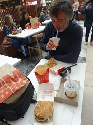 On ne se moque pas, et on compatit avec ces pauvres voyageurs qui n'ont pas trouvé d'autres lieux pour manger (ni d'endroit pour acheter de la nourriture)