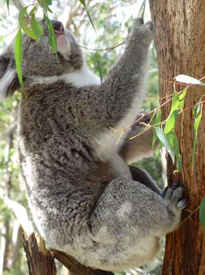 Une petite île, reliée au continent par un pont, qui abrite des pingouins qu'on ne voit en général qu'au crépuscule, quand ils rentrent du bain, (et c'est cher), des phoques et des koalas en convalescence.
