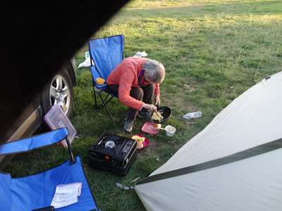 Voilà l'équipement pour le camping (sauf le mec amené de France)