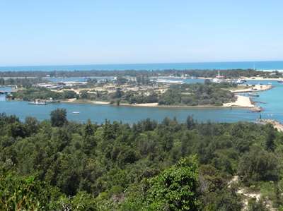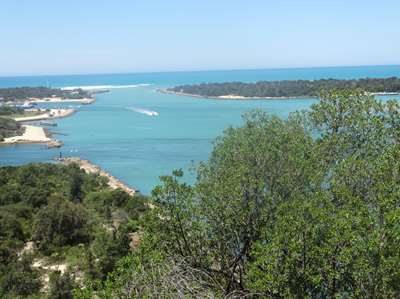 Nous revenons à la ville où nous sommes rapidement passés hier à la recherche d'un camping. En fait à l'origine il y avait 3 lacs reliés entre eux ; un chenal a été percé pour les relier à la mer et permettre le passage des bateaux.