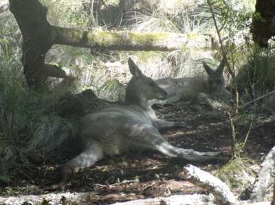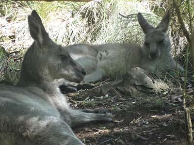 ça y est !!!! Mamie a fini par en dégotter deux qui se reposaient écrasés par la chaleur : NOS PREMIERS KANGOUROUS
