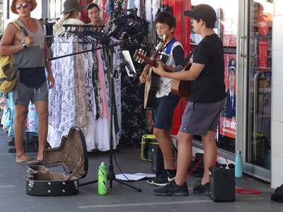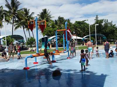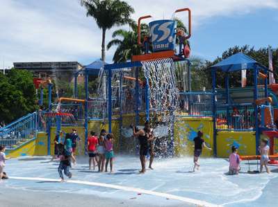 Des jeux d'eau gratuits le long du strand où Blancs et Aborigènes se mélangent sans problèmes