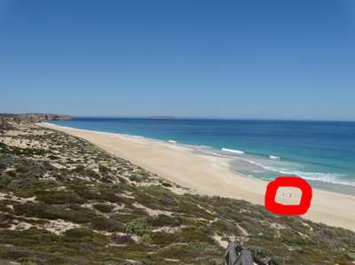 Toujours bon oeil, à la plage des dauphins, mamie a photographié.... un dauphin. Le vois-tu ? Par