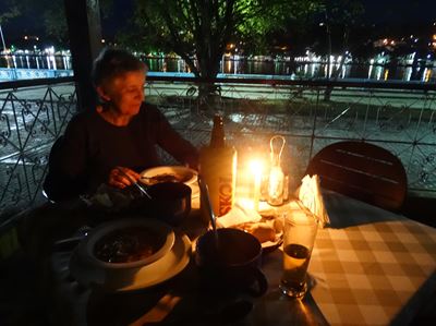 Le soir, soupe à l'hôtel où l'électricité n'est toujours pas revenue ; elle reviendra plus tard, mais pas la wifi